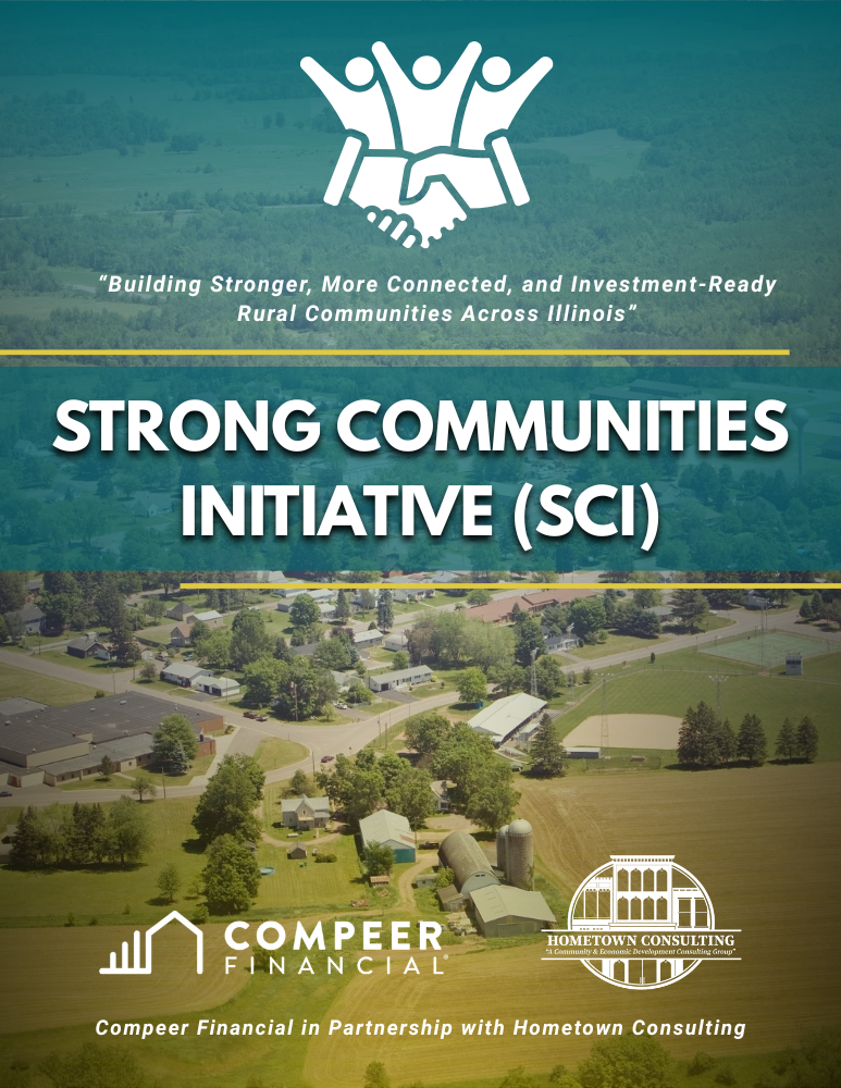 The Strong Communities Initiative (SCI) is a diagnostic, capacity-building program designed to help small and mid-sized communities strengthen their internal systems, readiness, and leadership alignment. SCI focuses on five equally weighted pillars of municipal health and performance, providing communities with a clear roadmap for operational and economic success. Through this Compeer Financial-funded initiative, Hometown Consulting partners directly with selected Illinois communities to evaluate current conditions, benchmark performance, and identify actionable steps toward greater efficiency, resilience, and growth.